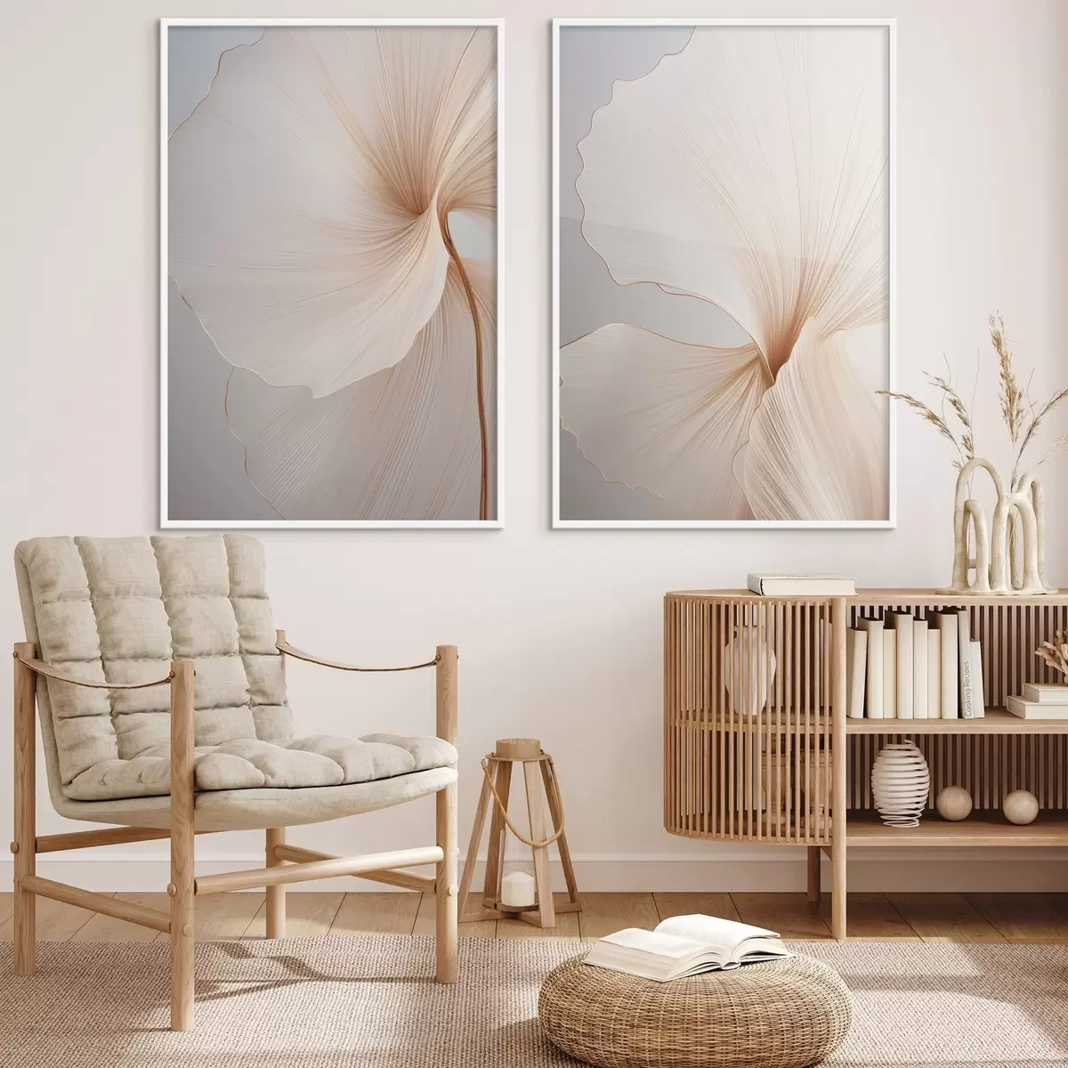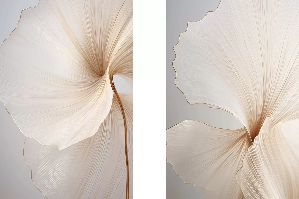 Plakat Abstraktsed lilled õhukeste, õrnade kroonlehtedega valge ja beeži toonides d00817