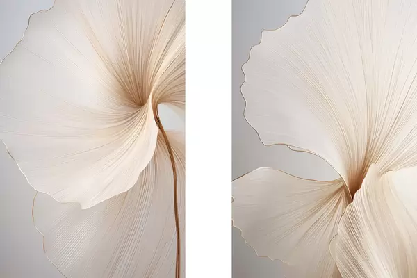 Poster Abstraktsed lilled õhukeste, õrnade kroonlehtedega valge ja beeži toonides Nr d00817
