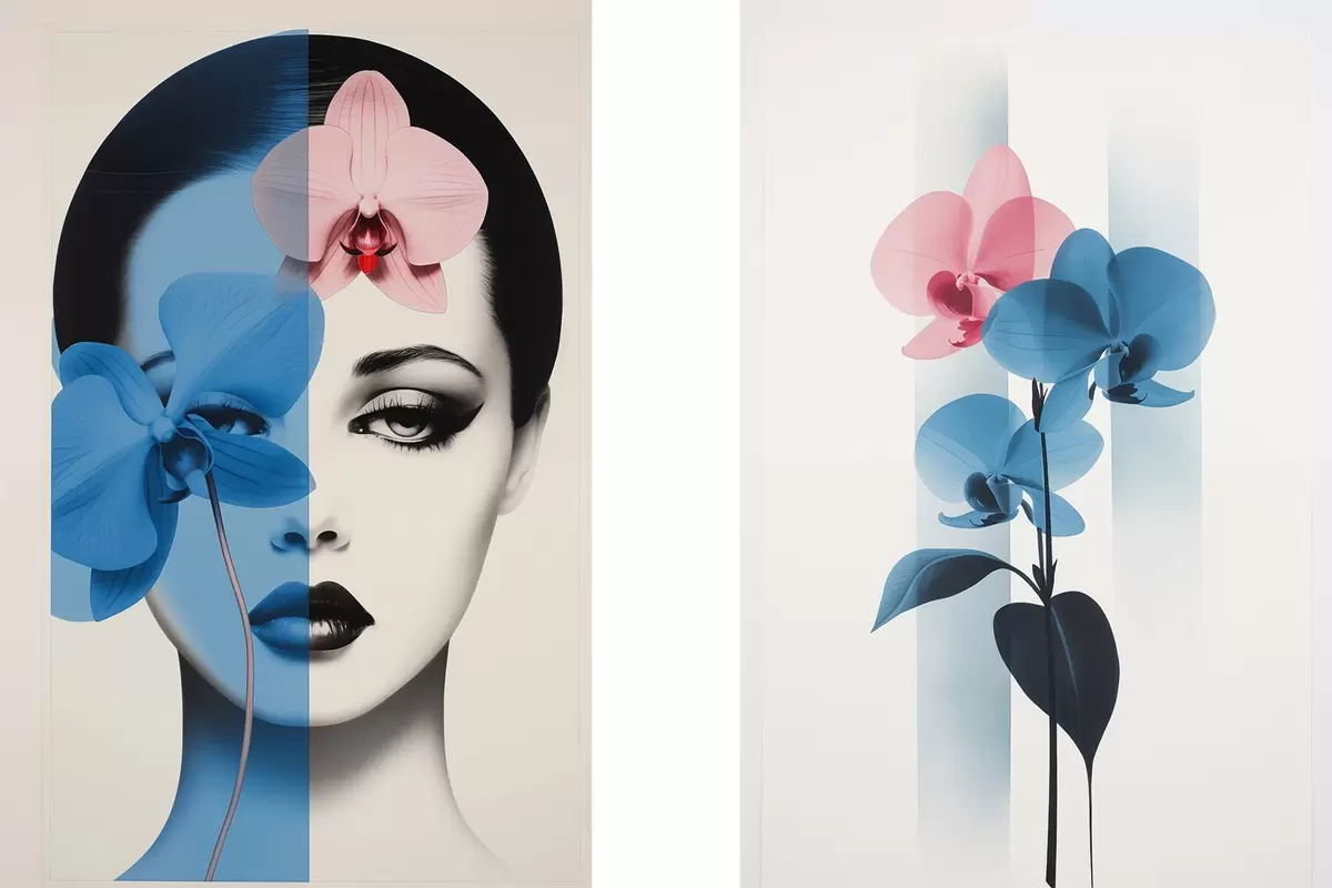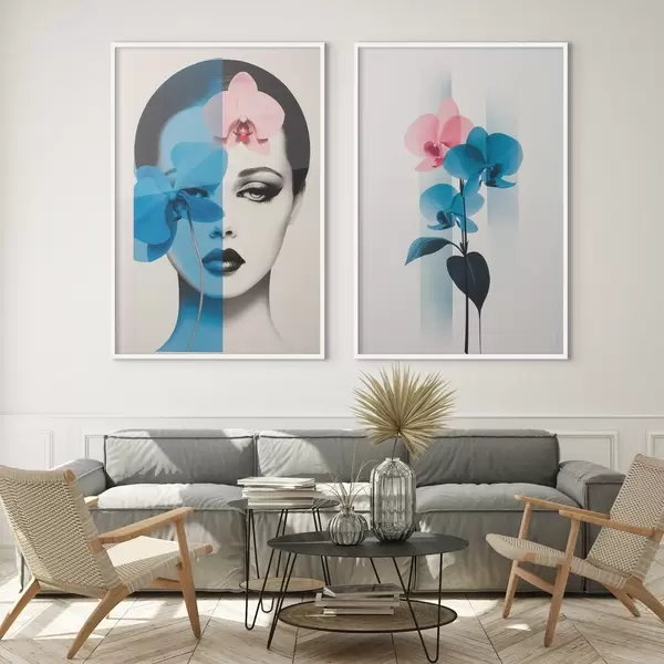 Plakat Abstraktne kunstiportree naisest orhideedega d00818