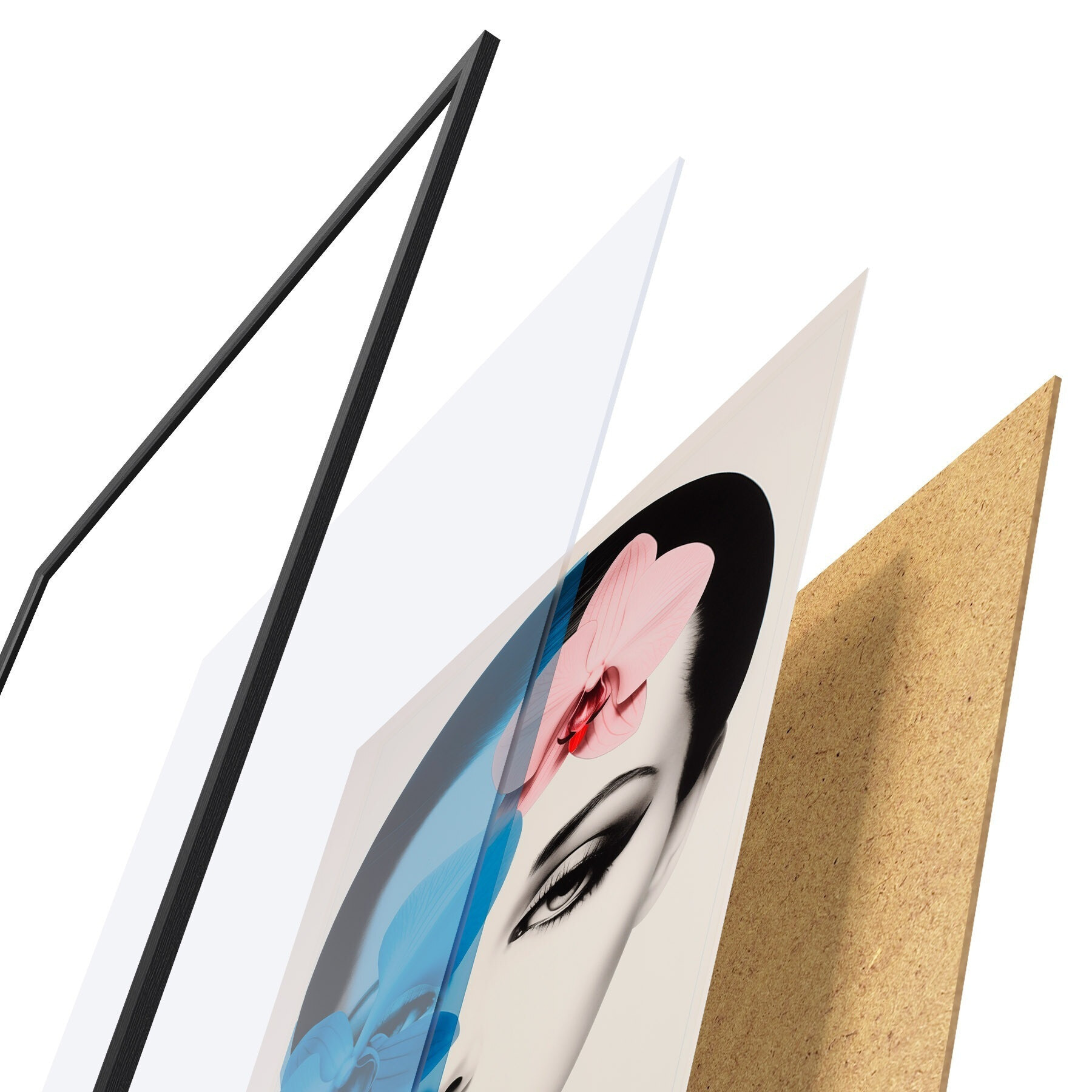 Plakat koosneb raamist, pleksiklaasist, trükitud pildist ja puitlaastplaadist alusplaadist. Tänu tagaküljel olevatele kinnitustele saab plakati kohe seinale riputada.