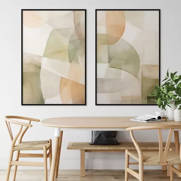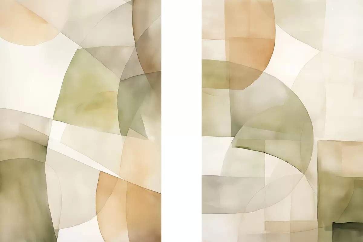 Plakat Abstraktsed akvarelltekstuuriga geomeetrilised kujundid rohelise, pruuni ja beeži toonides d00820