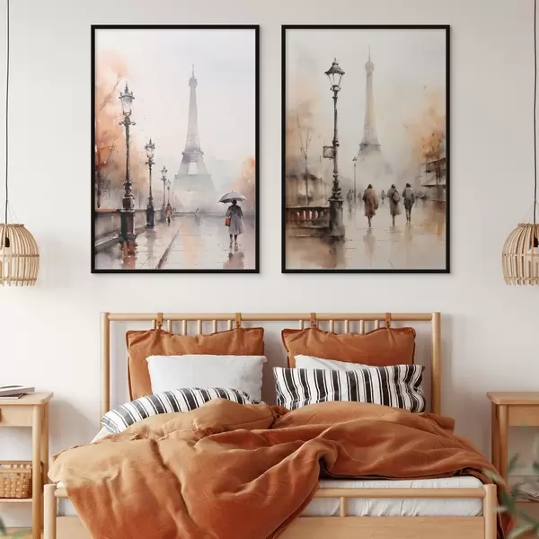 Poster Vihmane sügispäev Pariisis, taustal Eiffeli torn ja vanaaegsed tänavavalgustid Nr d00821