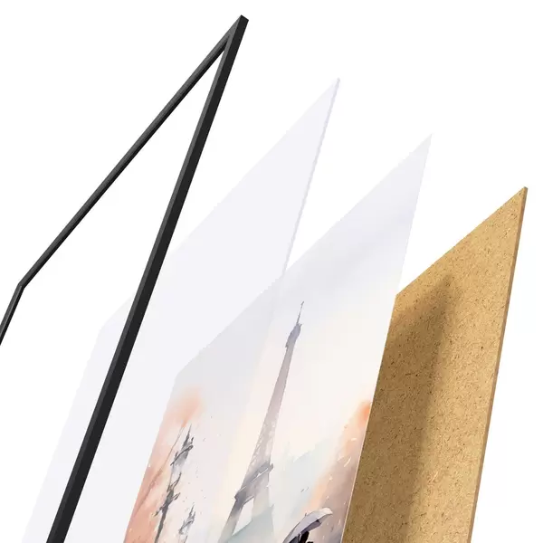 Plakat koosneb raamist, pleksiklaasist, trükitud pildist ja puitlaastplaadist alusplaadist. Tänu tagaküljel olevatele kinnitustele saab plakati kohe seinale riputada.