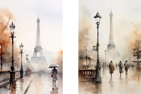 Plakat Vihmane sügispäev Pariisis, taustal Eiffeli torn ja vanaaegsed tänavavalgustid d00821