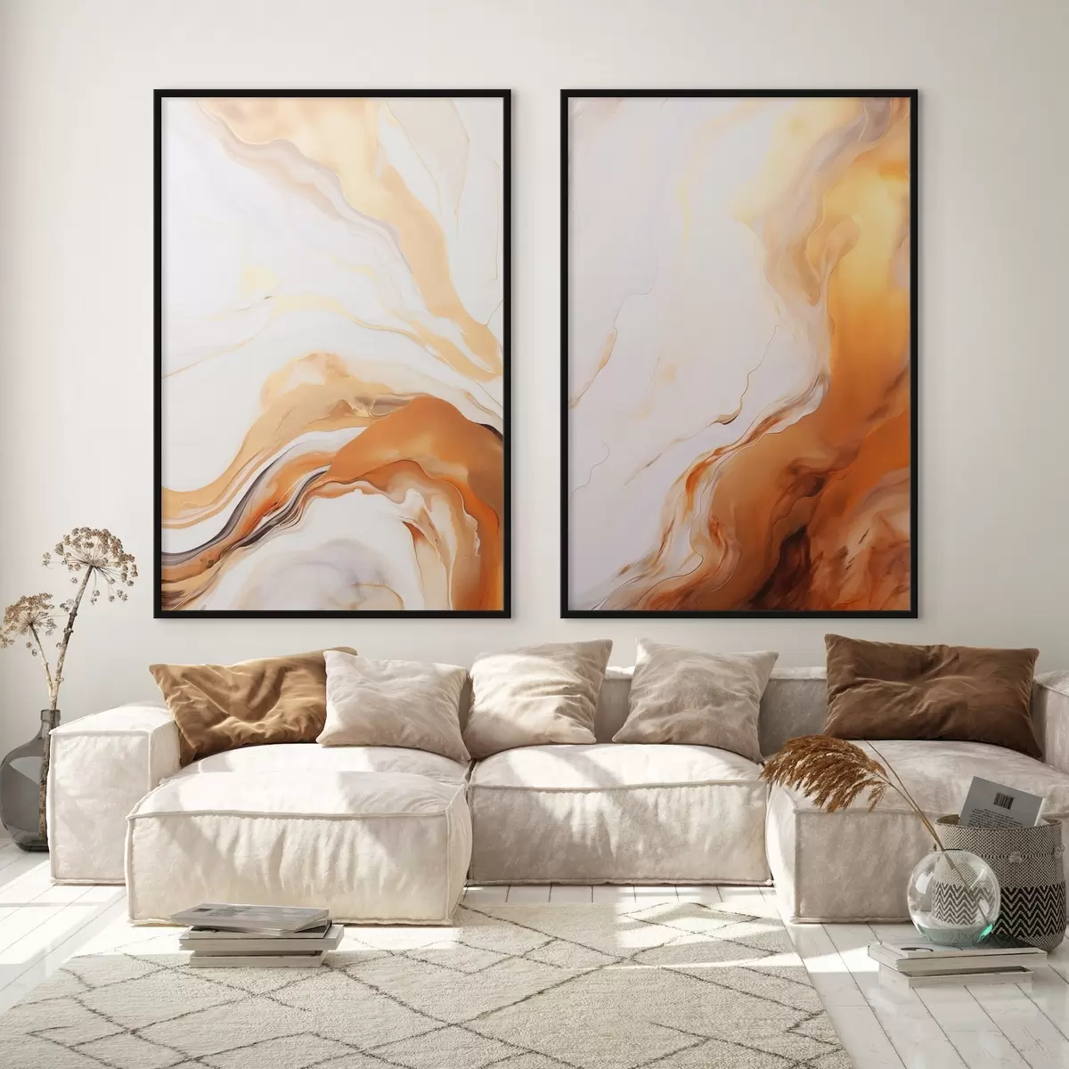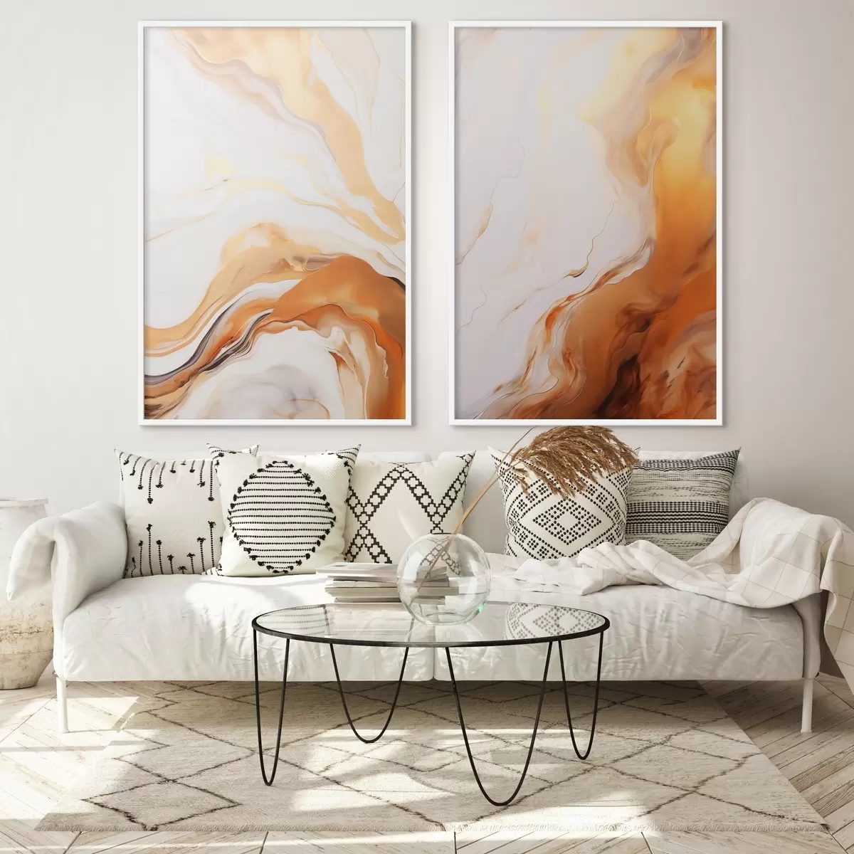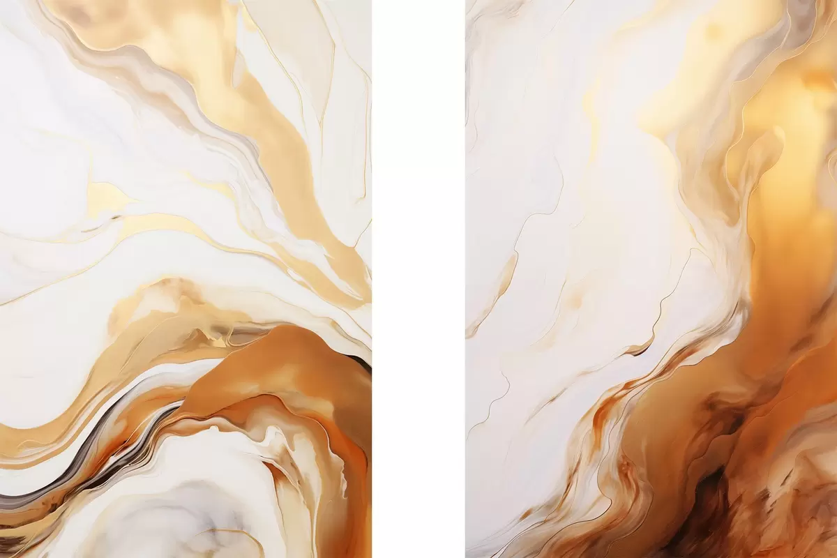Plakat Abstraktne maal, imitatsioon valge ja oranži värvidega, voolav kunst laineliste joontega, modernne kunst d00825