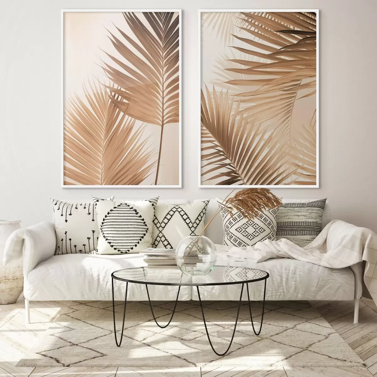 Poster Palmulehed pruunides toonides, neutraalne taust, minimalistlik stiil, loomulik valgustus, troopiline õhkkond Nr d00880