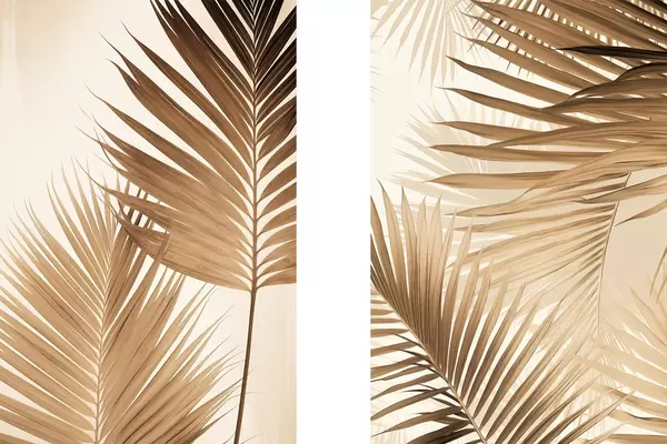 Poster Palmulehed pruunides toonides, neutraalne taust, minimalistlik stiil, loomulik valgustus, troopiline õhkkond Nr d00880