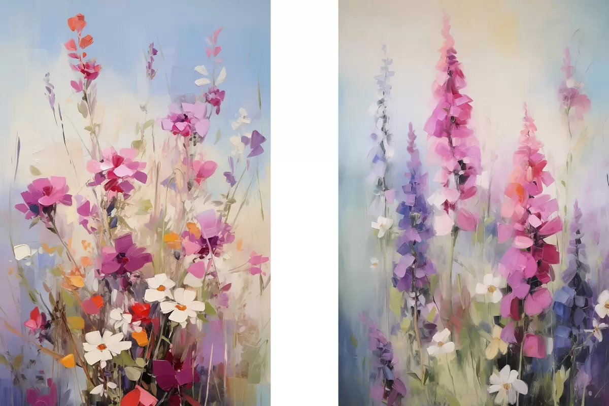 Plakat Erevad lilled valgeid margariite põllul, pehmed pintslitõmbed, pastellvärvid, impressionistlik stiil d00882