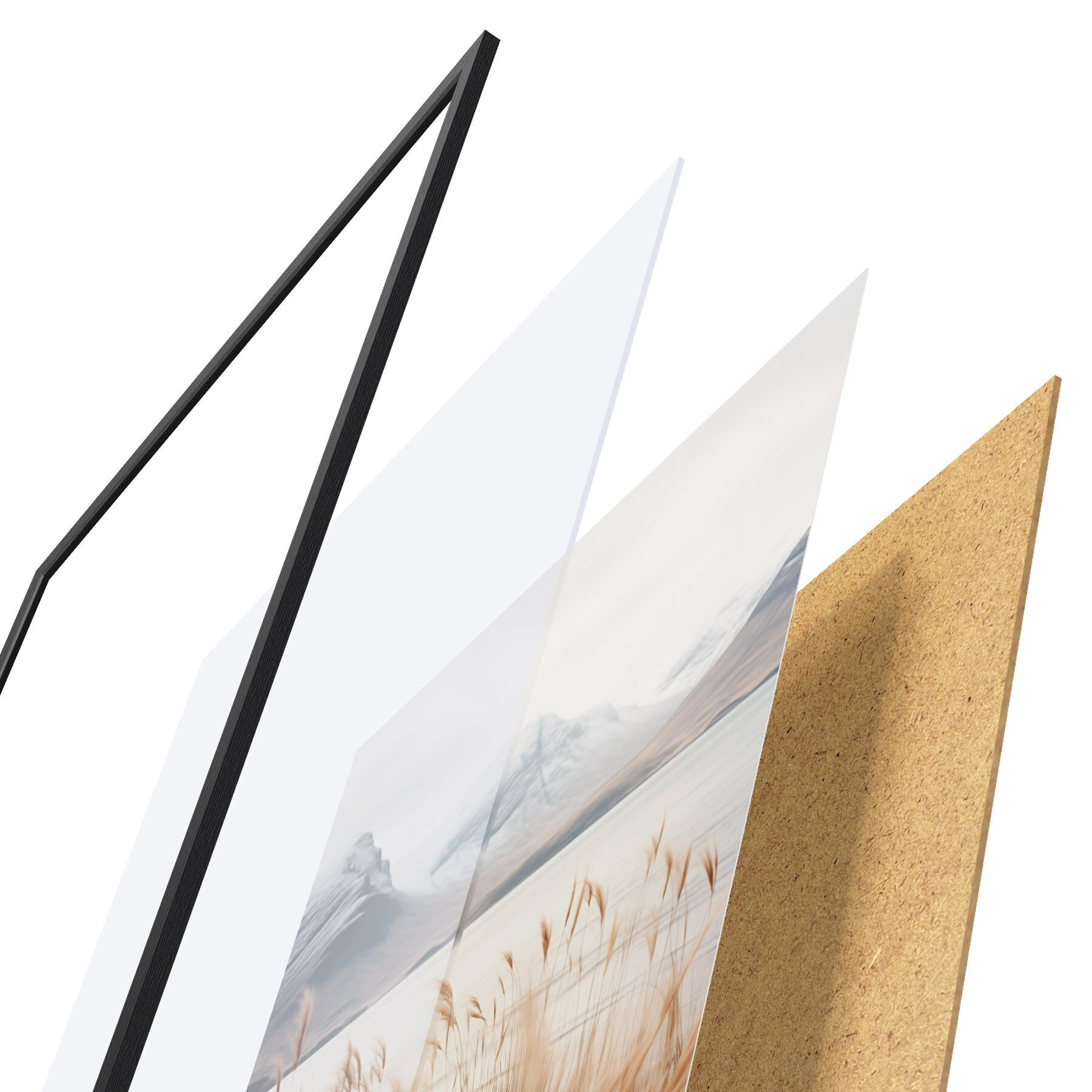 Plakat koosneb raamist, pleksiklaasist, trükitud pildist ja puitlaastplaadist alusplaadist. Tänu tagaküljel olevatele kinnitustele saab plakati kohe seinale riputada.