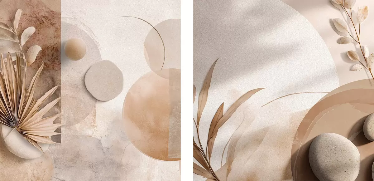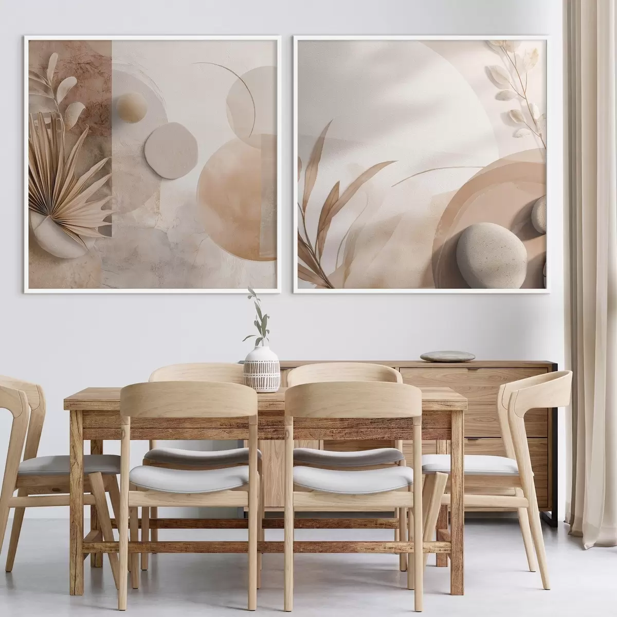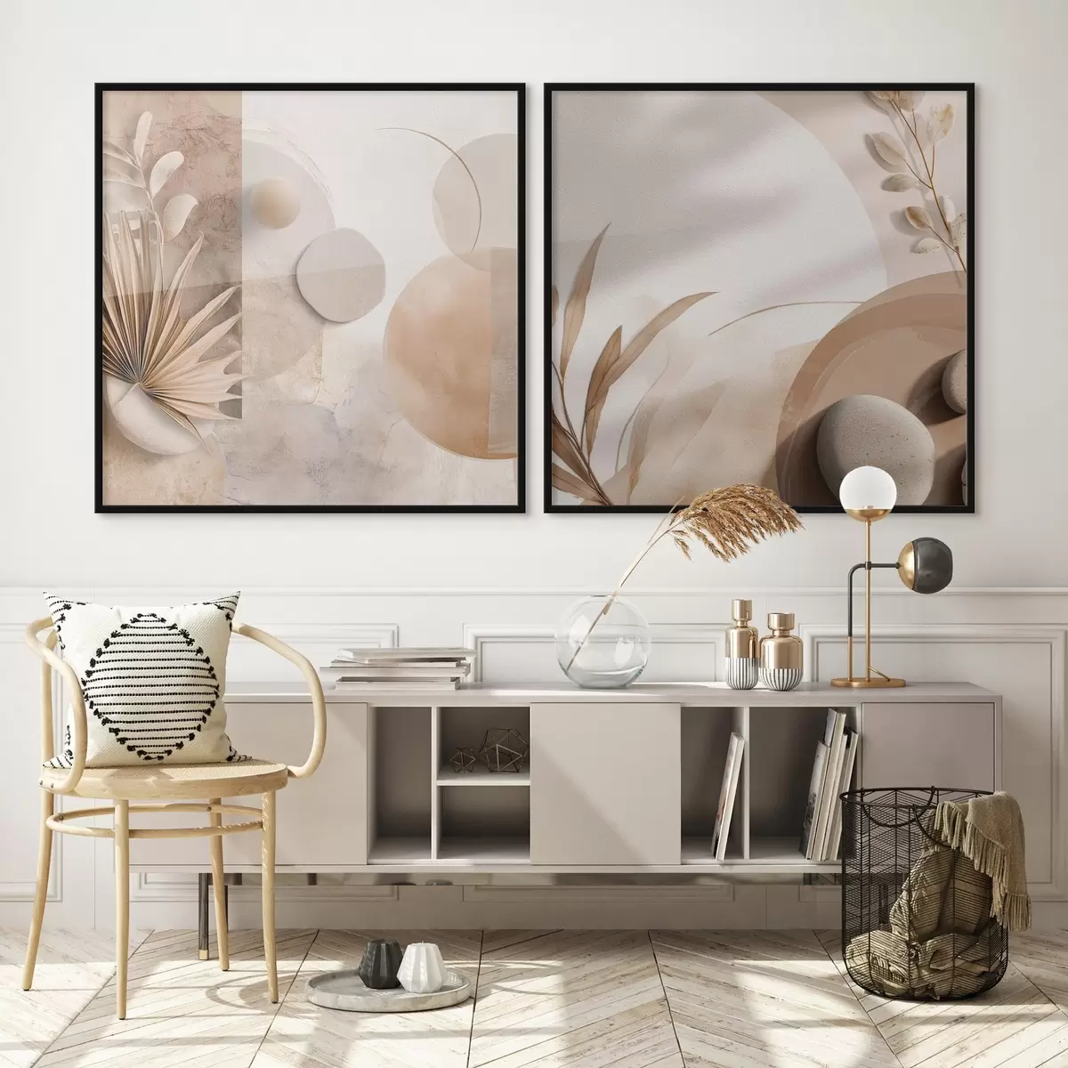 Poster Kaks lõuendit kuivatatud lehtede ja tekstuuriga kujunditega Nr d00893