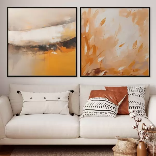 Poster Abstraktne diptühhon õlimaalistiilis kollase-oranži ja musta toonidega Nr d00897