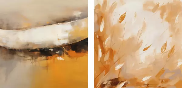 Plakat Abstraktne diptühhon õlimaalistiilis kollase-oranži ja musta toonidega d00897