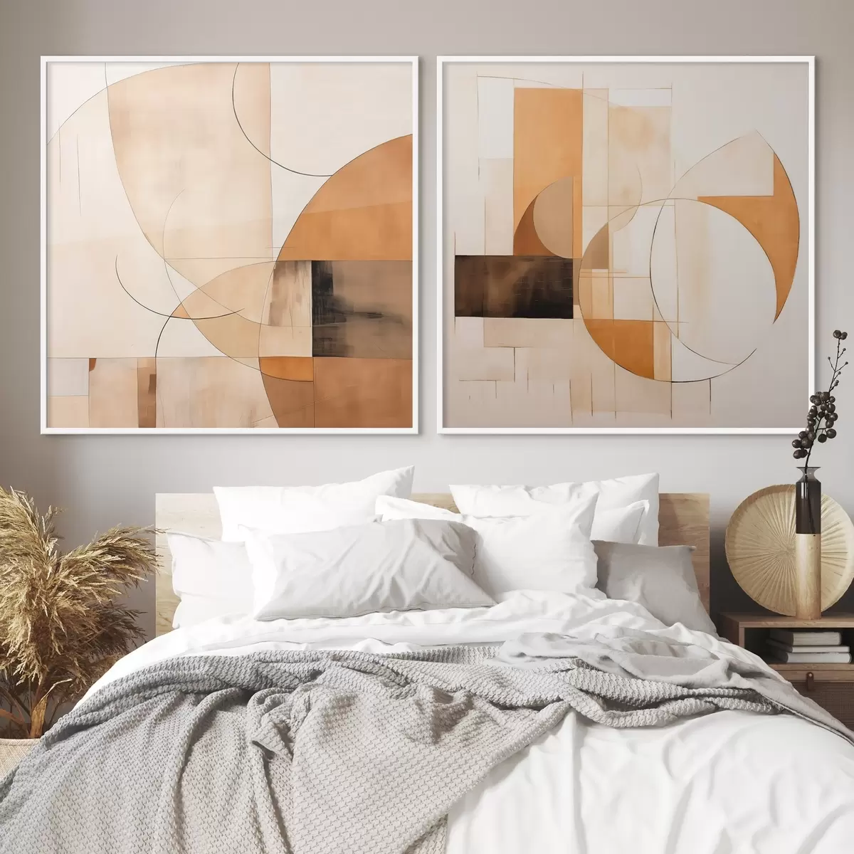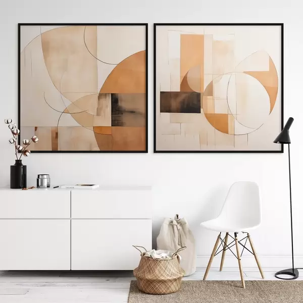 Poster Kaasaegne abstraktsioon ringide ja joontega kohvi-piima värvides Nr d00898