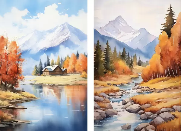 Poster Sügisene mägimaastik järve ja jõega Nr d00929