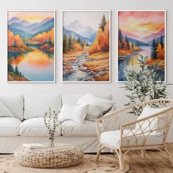 Poster Sügisene mägimaastik soojades päikeseloojangu toonides Nr d00930