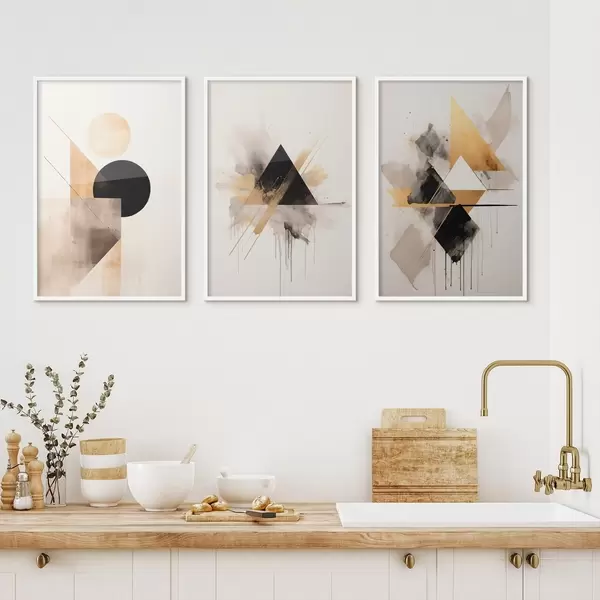 Poster Geomeetrilised kolmnurgad tindipritsmetega, must ja okker Nr d00963