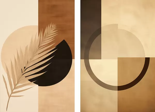 Poster Terrakotta ja beež geomeetria palmilehe motiiviga Nr d00968