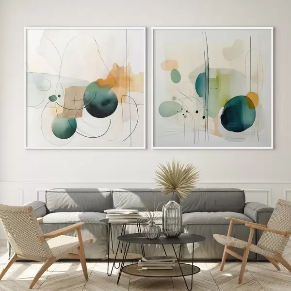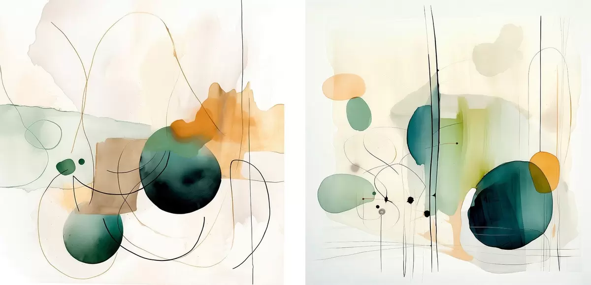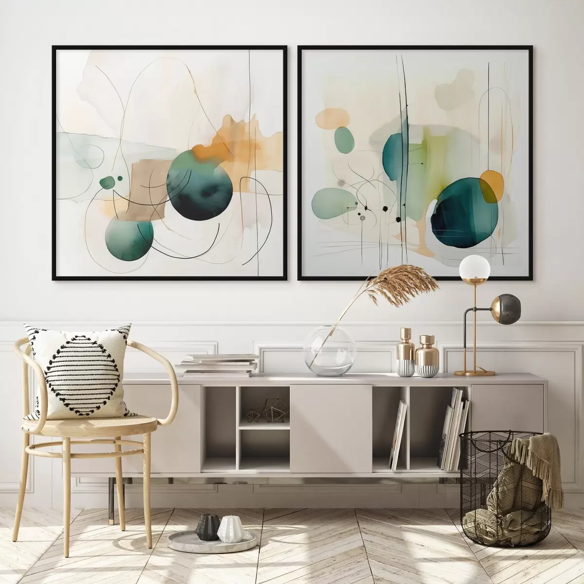 Plakat Kaheosaline abstraktne kompositsioon pehme värviga laigud d00985