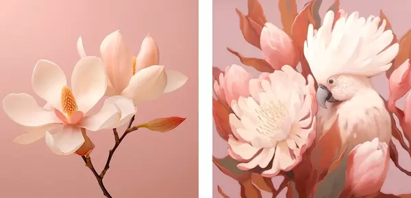 Plakat Kunstilise illustratsioonistiilis lillekompositsioon linnuga d00994