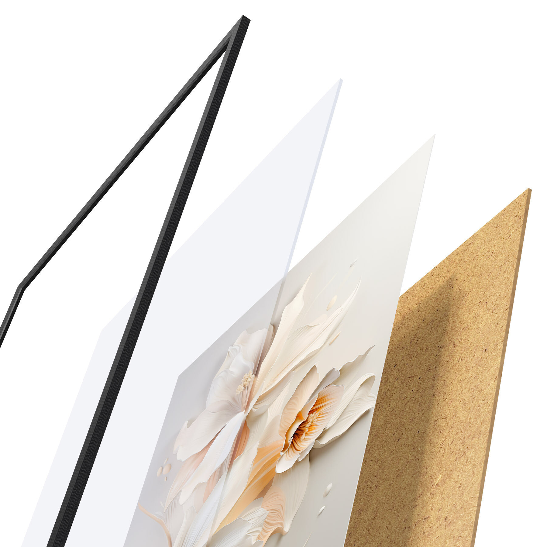Plakat koosneb raamist, pleksiklaasist, trükitud pildist ja puitlaastplaadist alusplaadist. Tänu tagaküljel olevatele kinnitustele saab plakati kohe seinale riputada.
