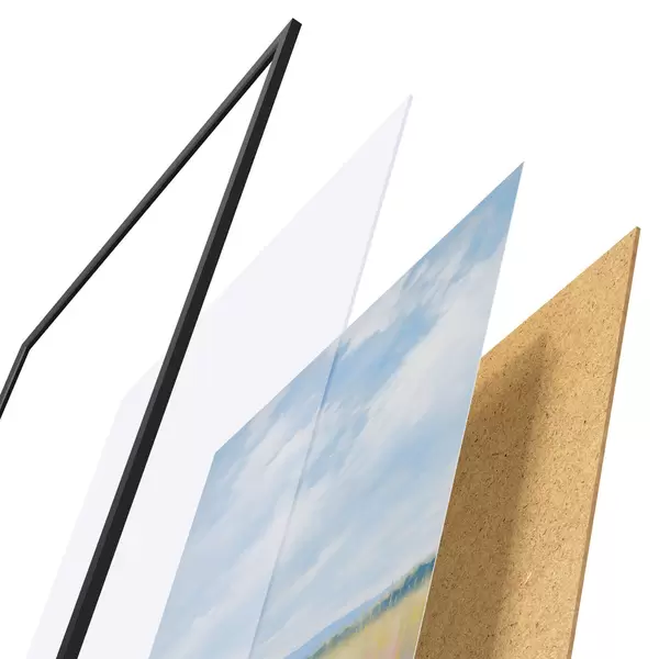Plakat koosneb raamist, pleksiklaasist, trükitud pildist ja puitlaastplaadist alusplaadist. Tänu tagaküljel olevatele kinnitustele saab plakati kohe seinale riputada.