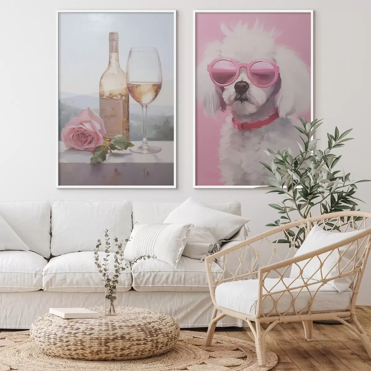 Poster Pudel ja klaas veini ning prillidega puudel, imitatsioonmaal Nr d01021