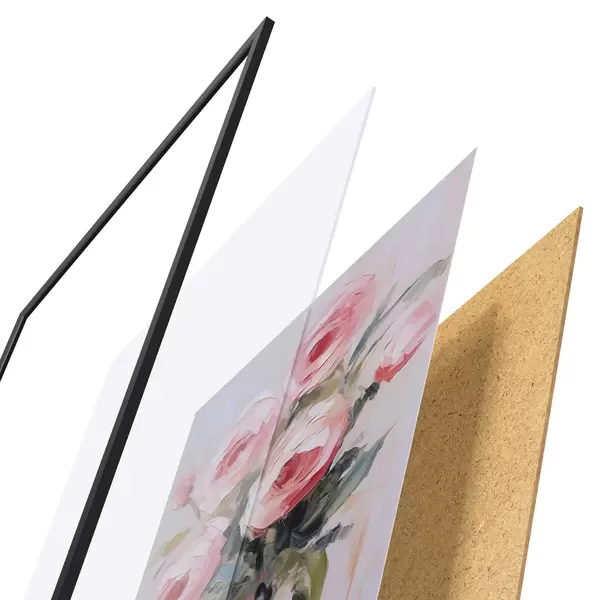 Plakat koosneb raamist, pleksiklaasist, trükitud pildist ja puitlaastplaadist alusplaadist. Tänu tagaküljel olevatele kinnitustele saab plakati kohe seinale riputada.