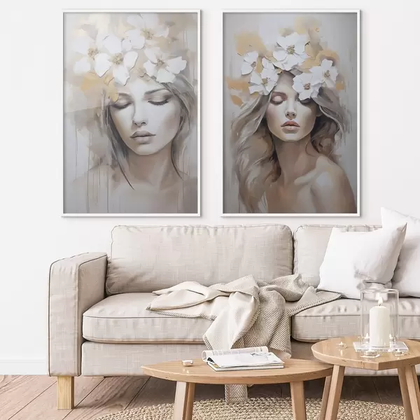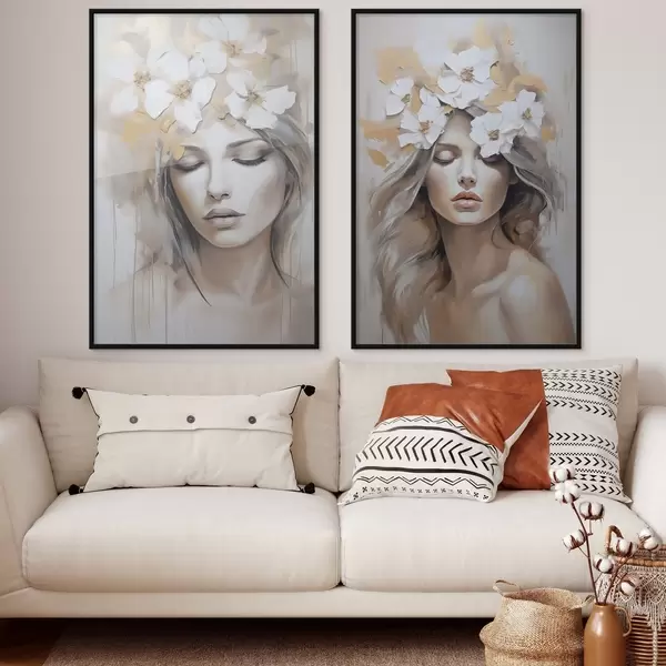 Poster Abstraktne portree tüdrukust lilledega, maalijäljend Nr d01034