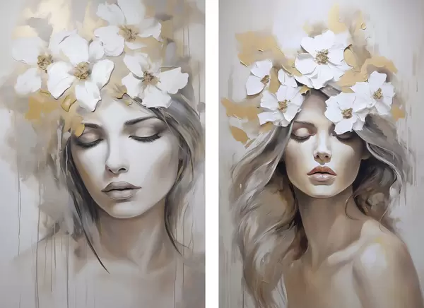 Poster Abstraktne portree tüdrukust lilledega, maalijäljend Nr d01034
