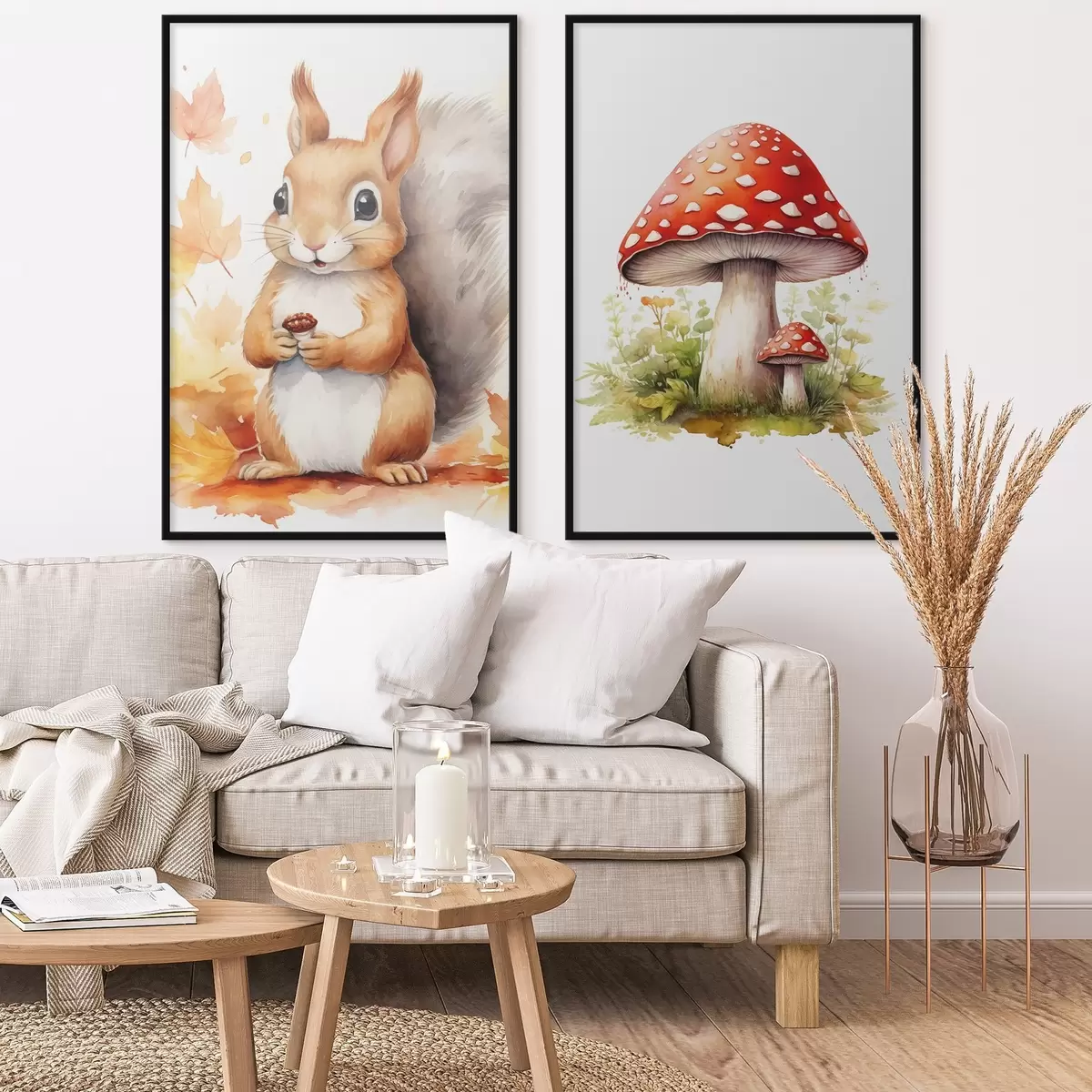 Poster Orav ja metsa seened, kärbseseen, imitatsioon akvarell Nr d01049