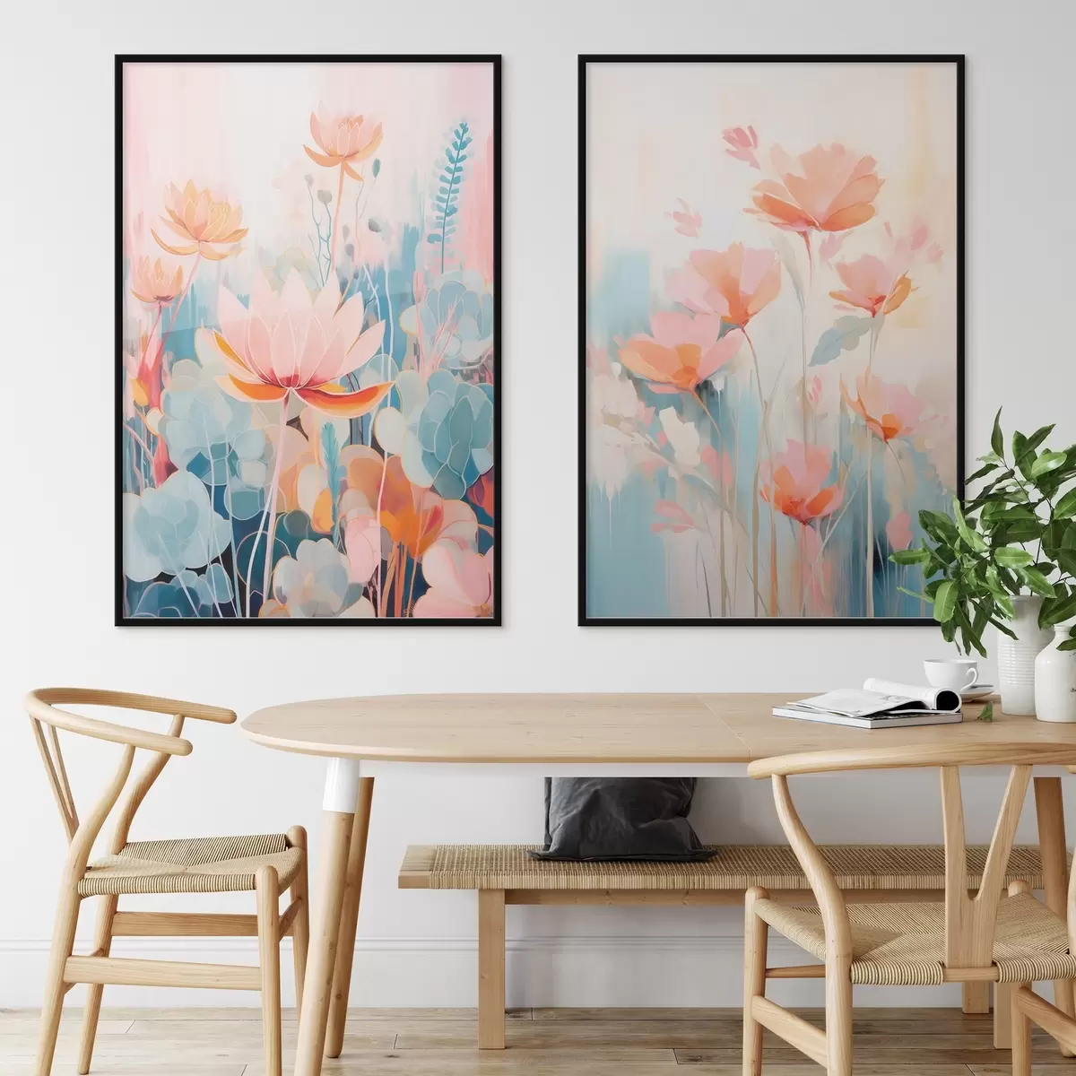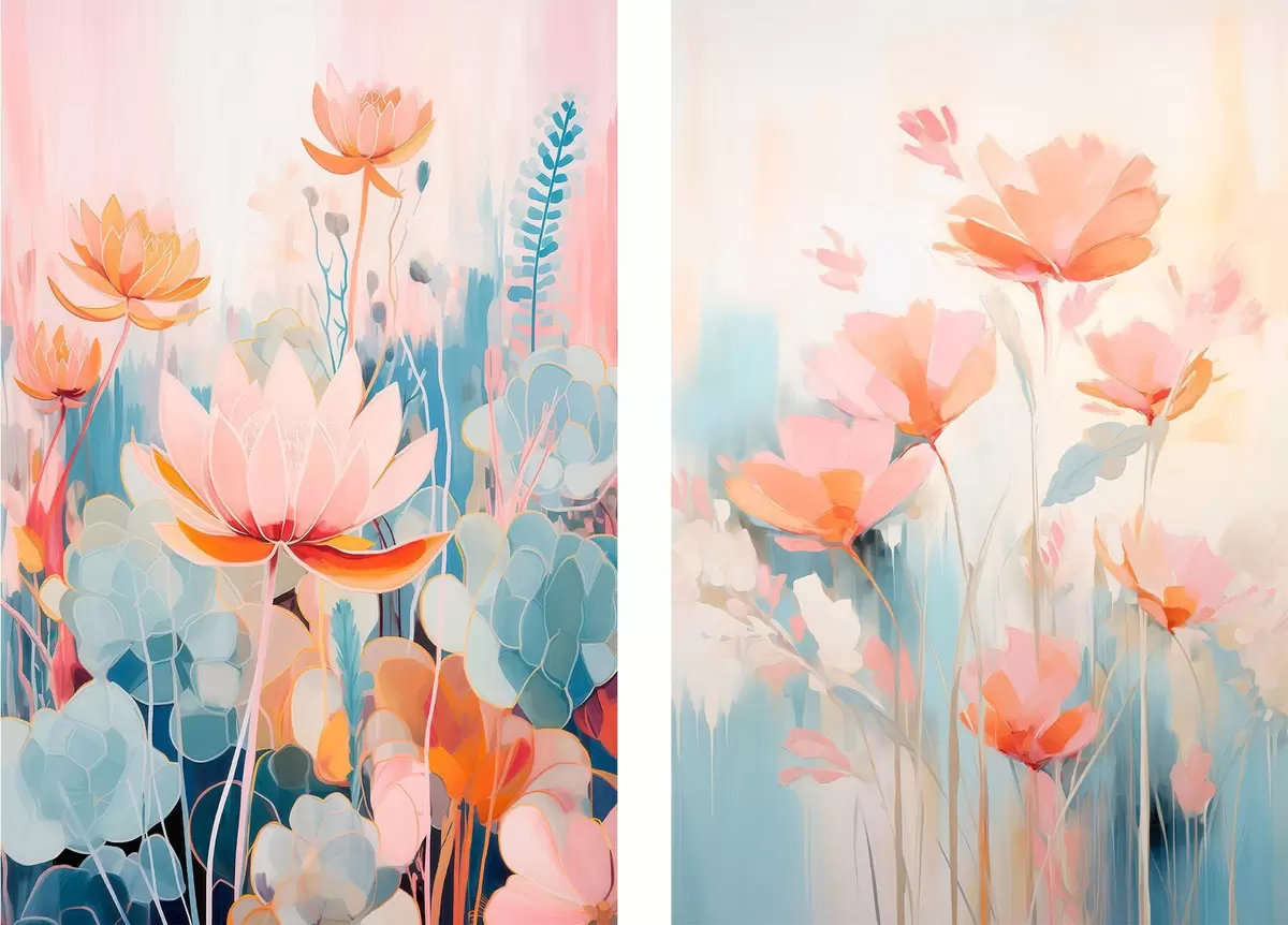 Poster Lillede akvarellharmoonia roosa-sinises värvipalettis Nr d01084