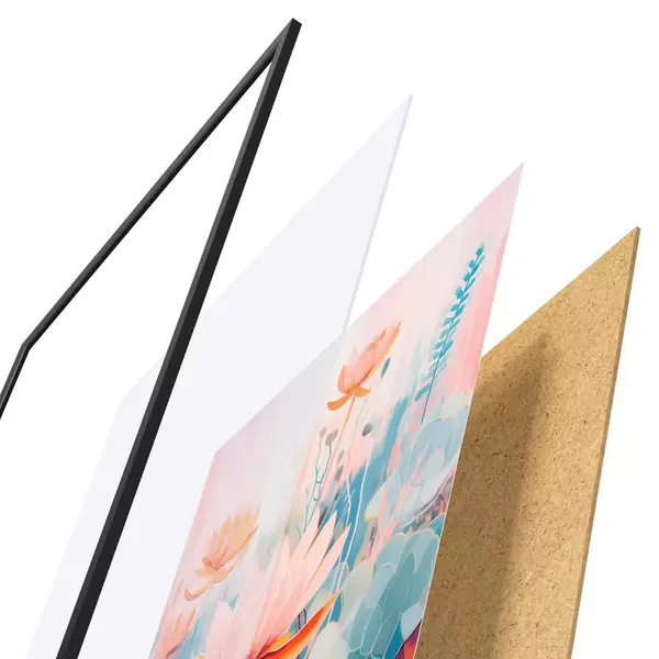 Plakat koosneb raamist, pleksiklaasist, trükitud pildist ja puitlaastplaadist alusplaadist. Tänu tagaküljel olevatele kinnitustele saab plakati kohe seinale riputada.