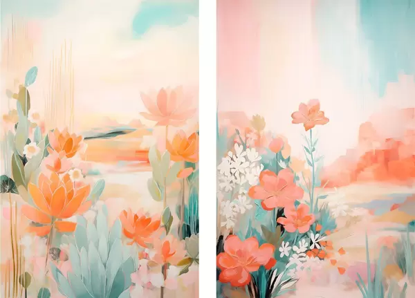 Plakat Pastelltoonides lillemotiivid kerge uduse oru taustal d01085
