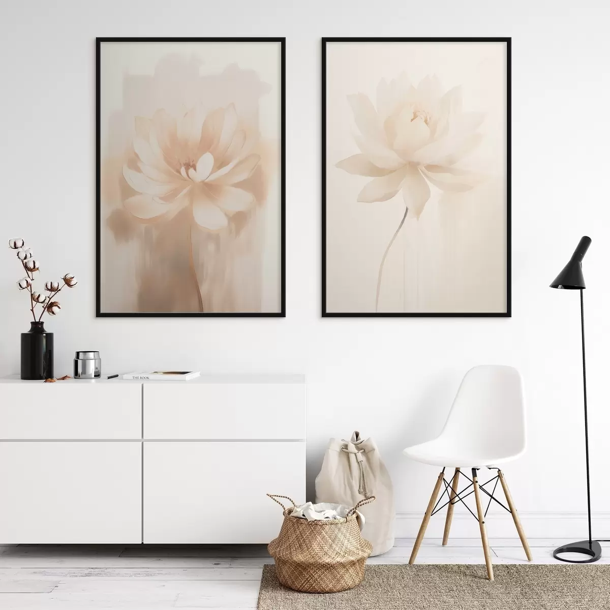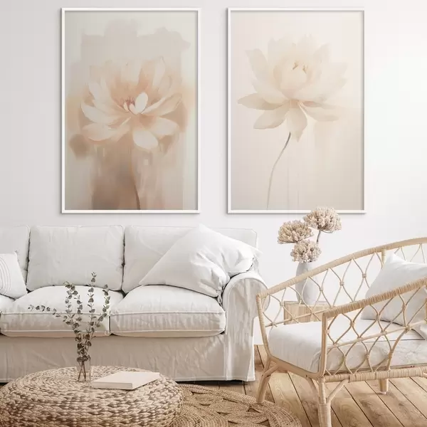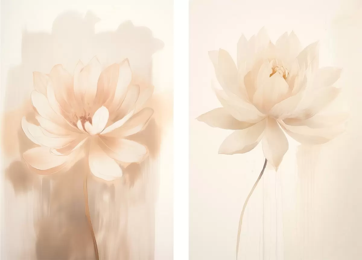 Plakat Lilleline kompositsioon soojades beežides toonides, kergete pintslitõmmetega ja õhulise taustaga d01087