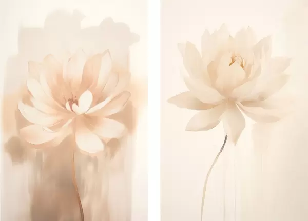 Plakat Lilleline kompositsioon soojades beežides toonides, kergete pintslitõmmetega ja õhulise taustaga d01087
