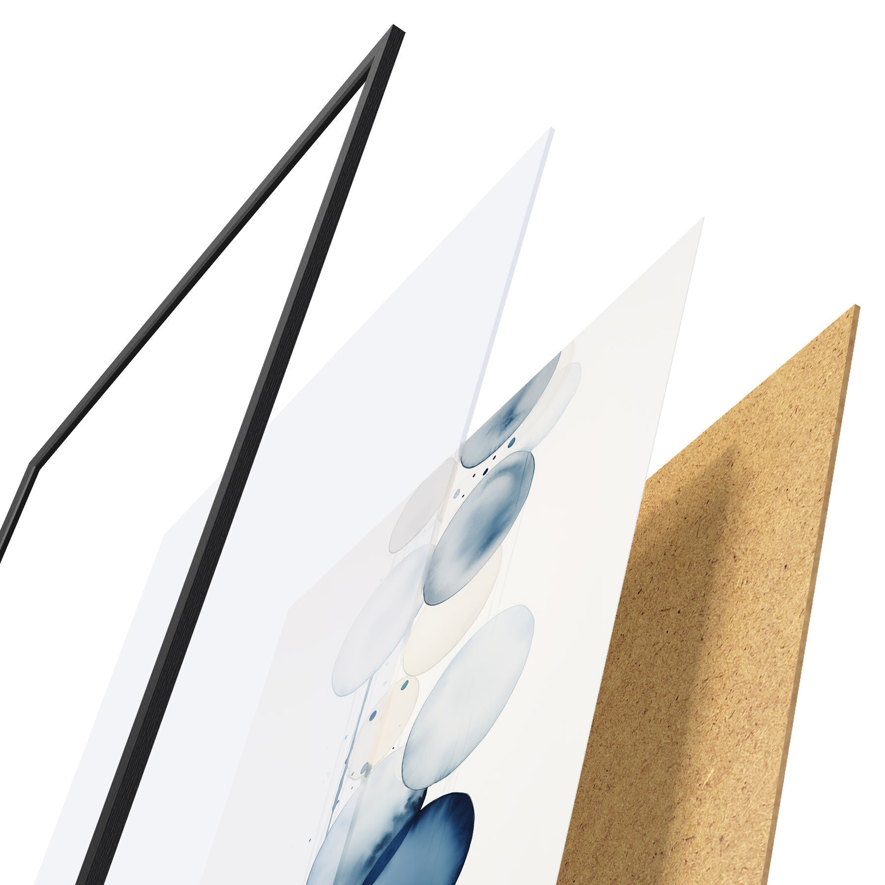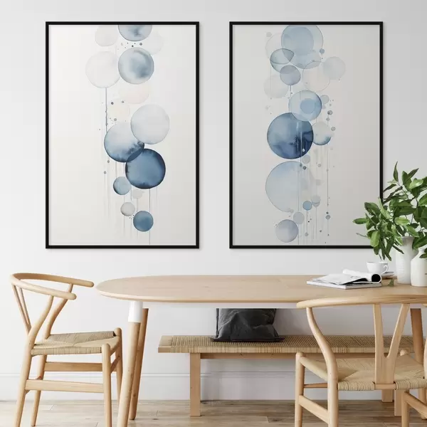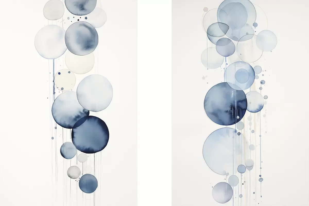 Plakat Abstraktsed tekstuuriga sinised ja valged akvarellringid erinevates suurustes valgel taustal d01118