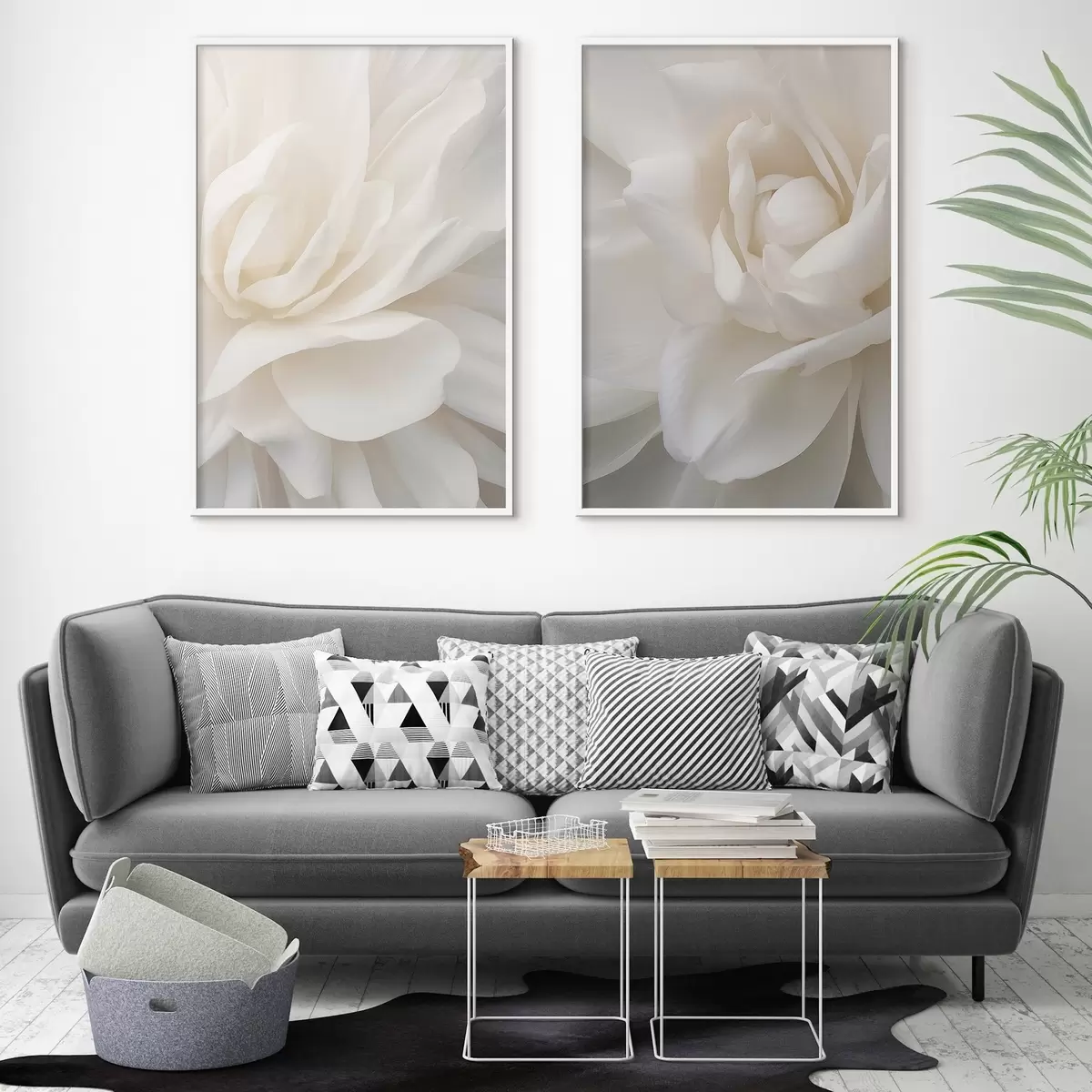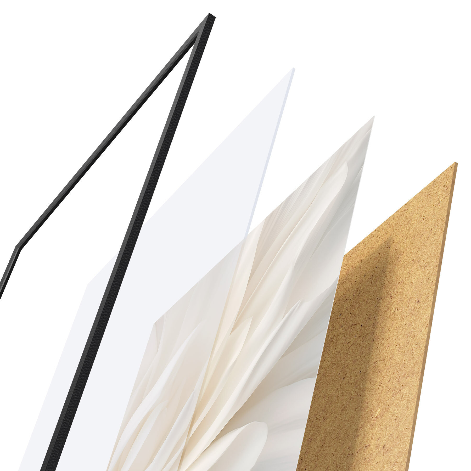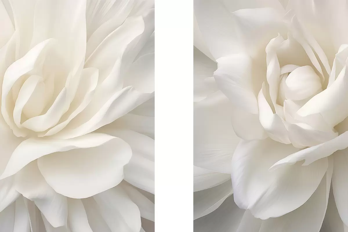 Plakat Abstraktne valge õis õrnad, kihilised kroonlehed, minimalistlik kunst d01120