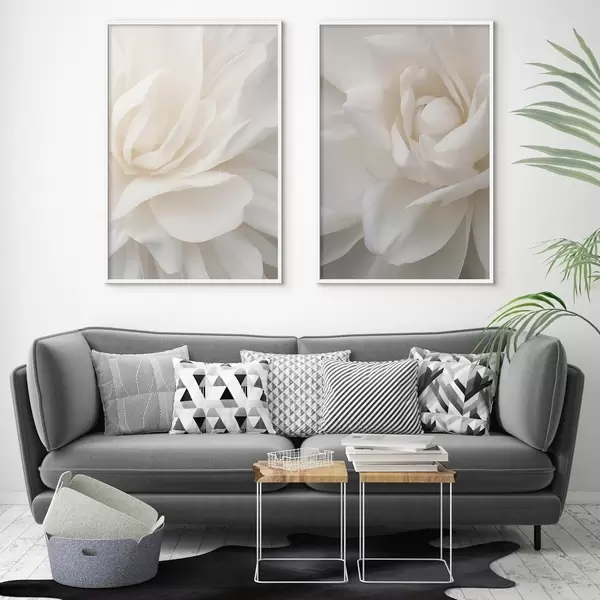 Poster Abstraktne valge õis õrnad, kihilised kroonlehed, minimalistlik kunst Nr d01120
