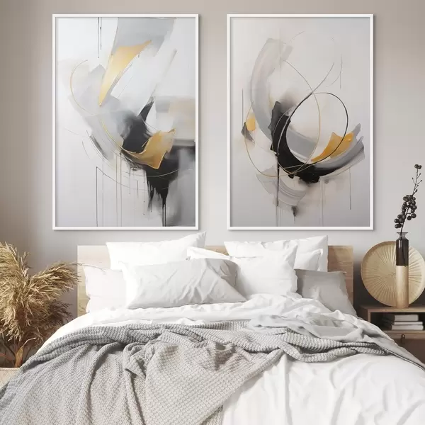 Poster Abstraktne maal kollaste, mustade ja valgetega pintslitõmmetega, dünaamilised jooned Nr d01125