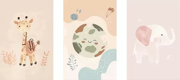 Poster Maa, kaelkirjak ja elevant Nr d01135