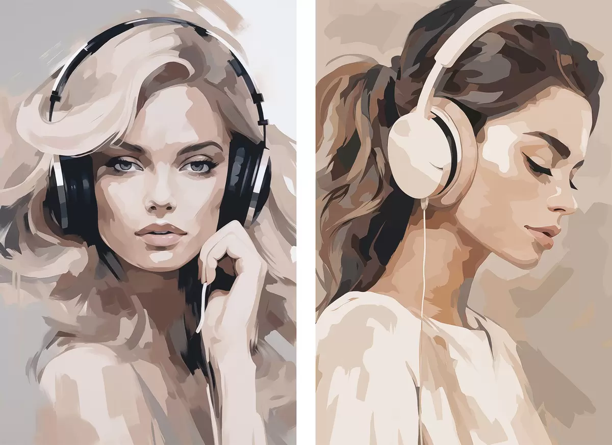 Poster Portree tüdrukust kõrvaklappidega Nr d01192