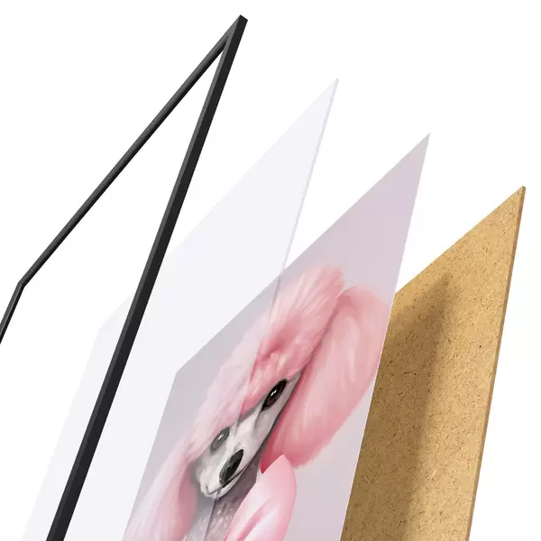 Plakat koosneb raamist, pleksiklaasist, trükitud pildist ja puitlaastplaadist alusplaadist. Tänu tagaküljel olevatele kinnitustele saab plakati kohe seinale riputada.