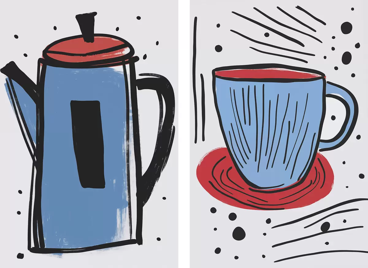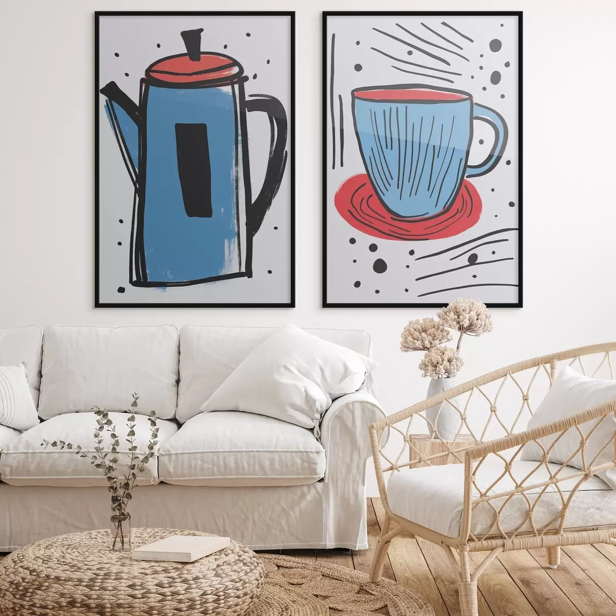 Poster Primitiivse joonistuse kohvikan ja tass Nr d01225