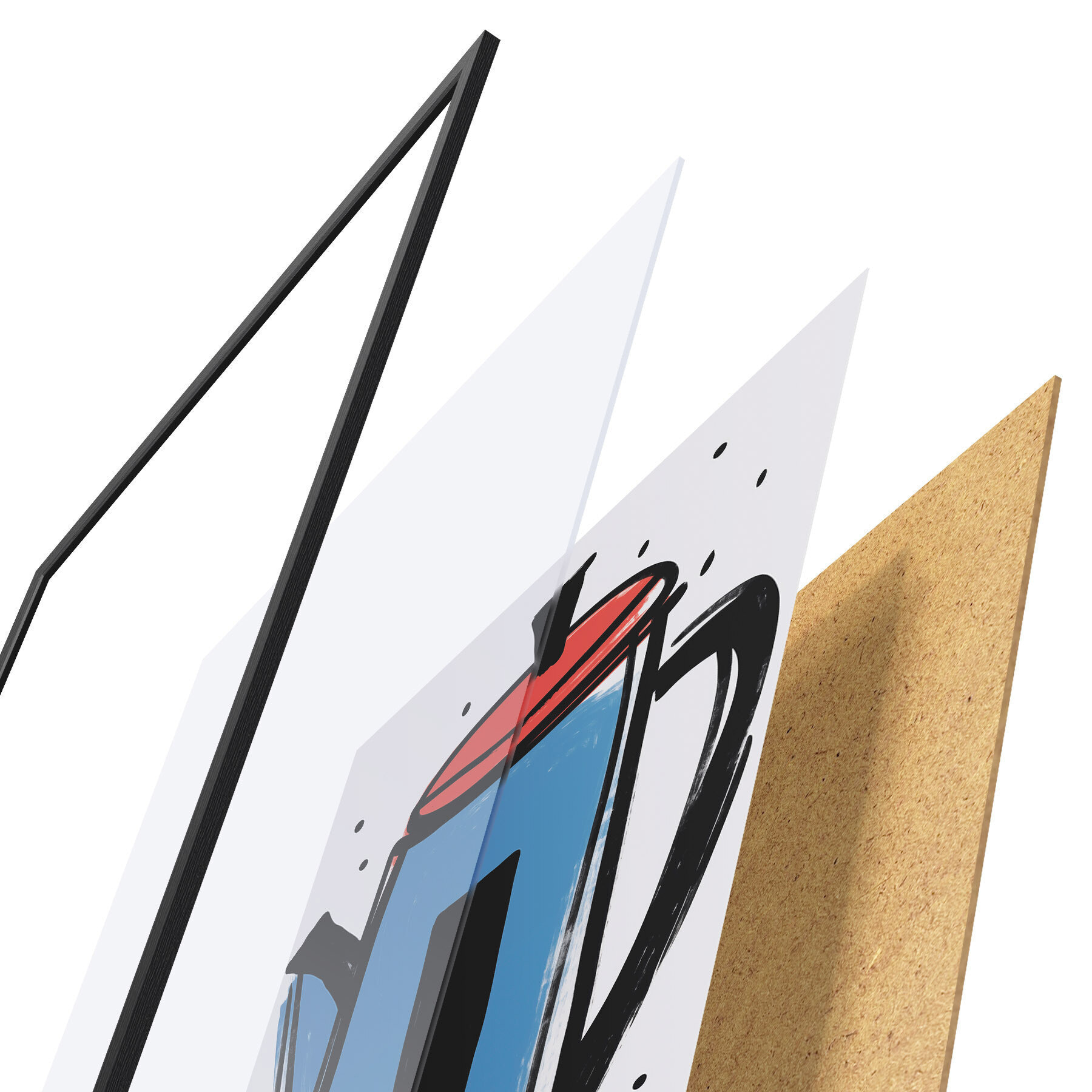 Plakat koosneb raamist, pleksiklaasist, trükitud pildist ja puitlaastplaadist alusplaadist. Tänu tagaküljel olevatele kinnitustele saab plakati kohe seinale riputada.