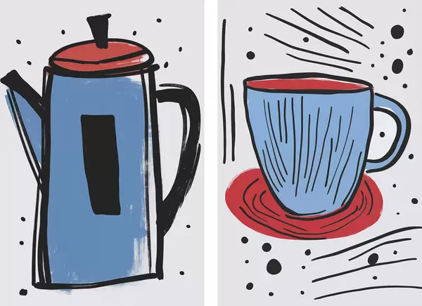 Poster Primitiivse joonistuse kohvikan ja tass Nr d01225