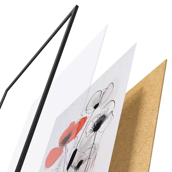 Plakat koosneb raamist, pleksiklaasist, trükitud pildist ja puitlaastplaadist alusplaadist. Tänu tagaküljel olevatele kinnitustele saab plakati kohe seinale riputada.
