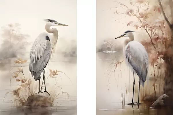 Plakat Kõrgete rohtude ja puudega taustal seisab järve kaljul herilane. d01239