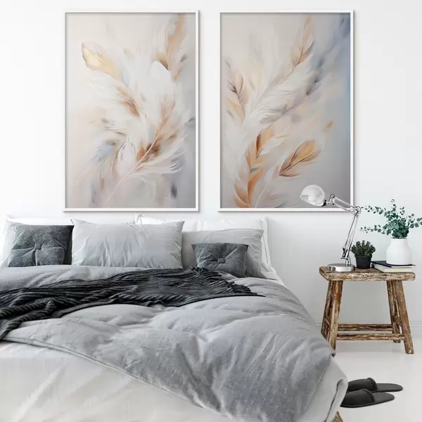 Plakat Suured, pehmed suled, milles on segunenud valged, kollased ja pruunid toonid, heleda, abstraktse taustaga. d01247