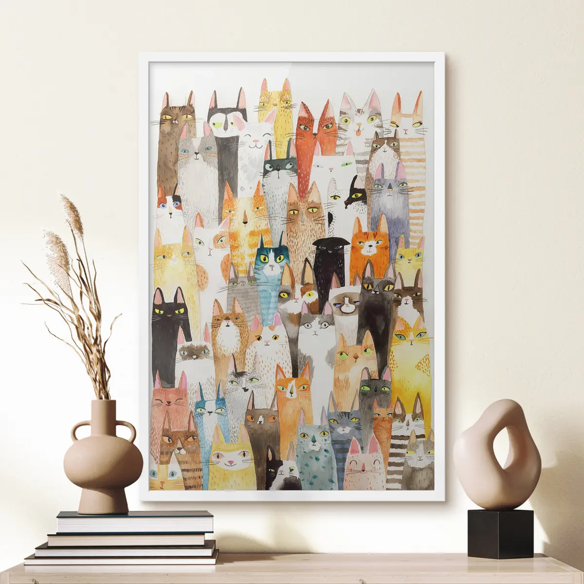 Plakat Värvikas kogunemine uudishimulikest kassidest f01036