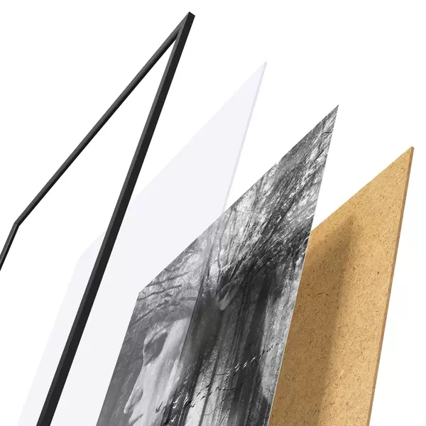 Plakat koosneb raamist, pleksiklaasist, trükitud pildist ja puitlaastplaadist alusplaadist. Tänu tagaküljel olevatele kinnitustele saab plakati kohe seinale riputada.